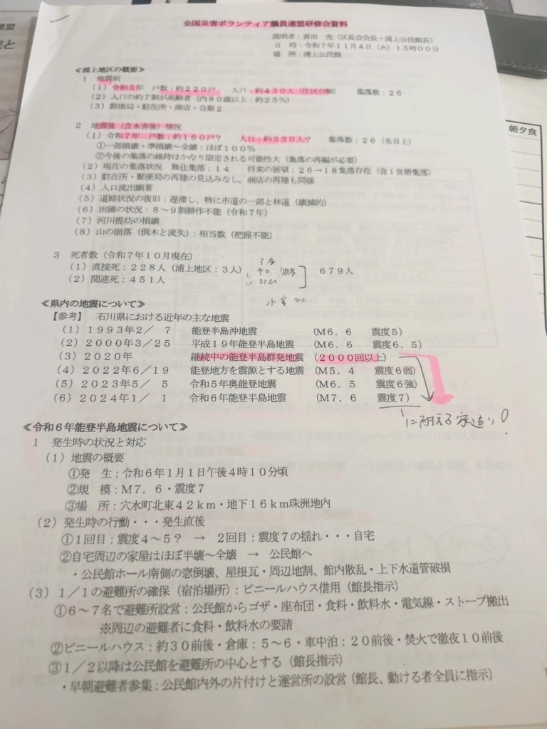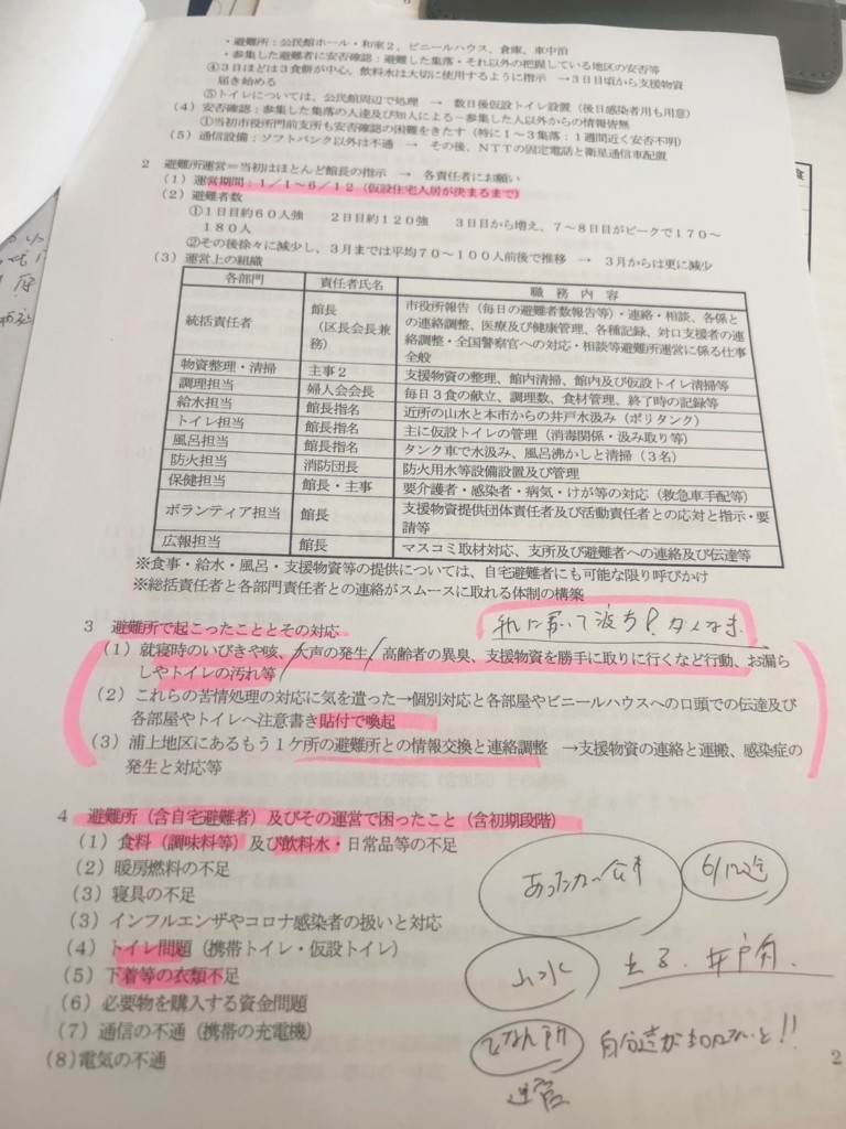 その手元には、避難所運営の全記録が丁寧に残されていました。